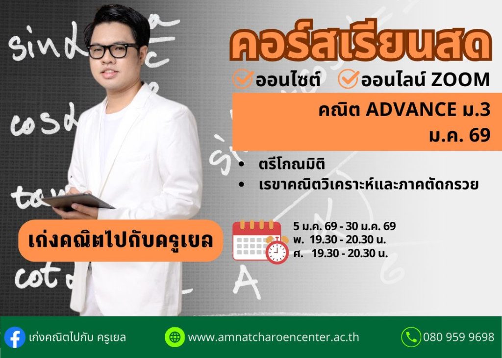 M368M211 – คณิต ADVANCE ม.3 ปีการศึกษา 2568 เดือน ม.ค. 69