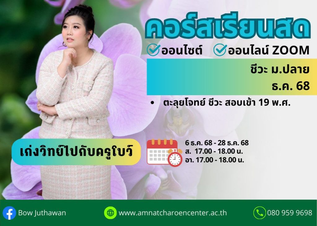 MP68B101 – ชีวะ ม.ปลาย ปีการศึกษา 2568 เดือน มี.ค. 68 (Summer 1)