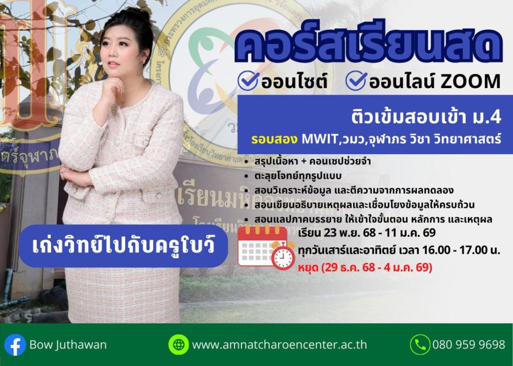 M368F101 – โค้งสุดท้ายเตรียมสอบเข้า ม.4 รอบแรก MWIT, วมว., จุฬภาภร, พสวท. วิชา วิทยาศาสตร์