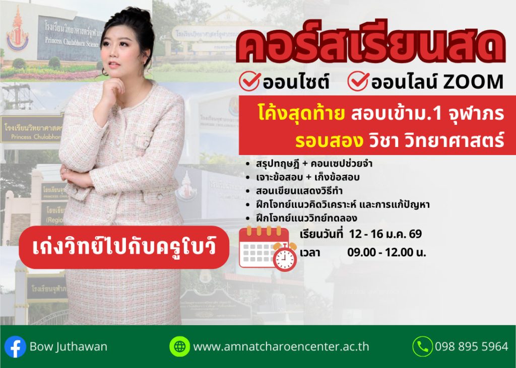 M368F301 – โค้งสุดท้ายสอบเข้า ม.4 รอบสอง MWIT, วมว., จุฬภาภร วิชา วิทยาศาสตร์