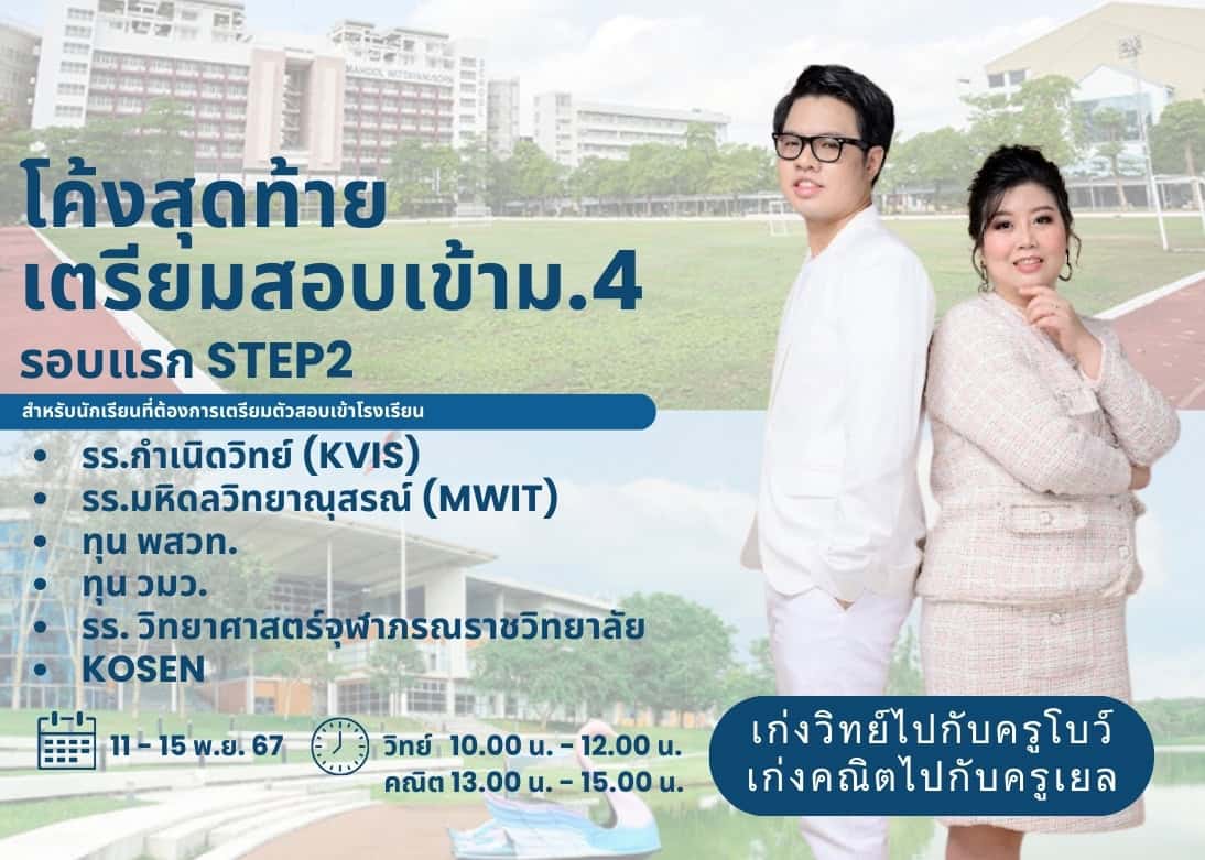 คอร์สเรียนสดออนไซต์และสดออนไลน์ วิชาวิทยาศาสตร์และคณิตศาสตร์ สำหรับเตรียมสอบเข้า ม.4 รร.มหิดลวิทยาณุสรณ์ (MWIT) , รร.กำเนิดวิทย์ (KVIS), ทุน พสวท. , สถาบันไทยโคเซ็น (KOSEN) และรร.วิทยาศาสตร์จุฬาภรณราชวิทยาลัย ในช่วงโค้งสุดท้ายเพื่อเตรียมความพร้อมก่อนสอบเข้ารอบแรก เพื่อคัดนักเรียนเข้าเรียนประจำปีการศึกษา 2568 โดยทั้งครูโบว์และครูเยล จะพานักเรียนทบทวนและสรุปเนื้อหาที่ต้องใช้ในการสอบทั้งหมด ตะลุยข้อสอบเก่าและเก็งข้อสอบที่คาดว่าจะออกสอบในปีนี้