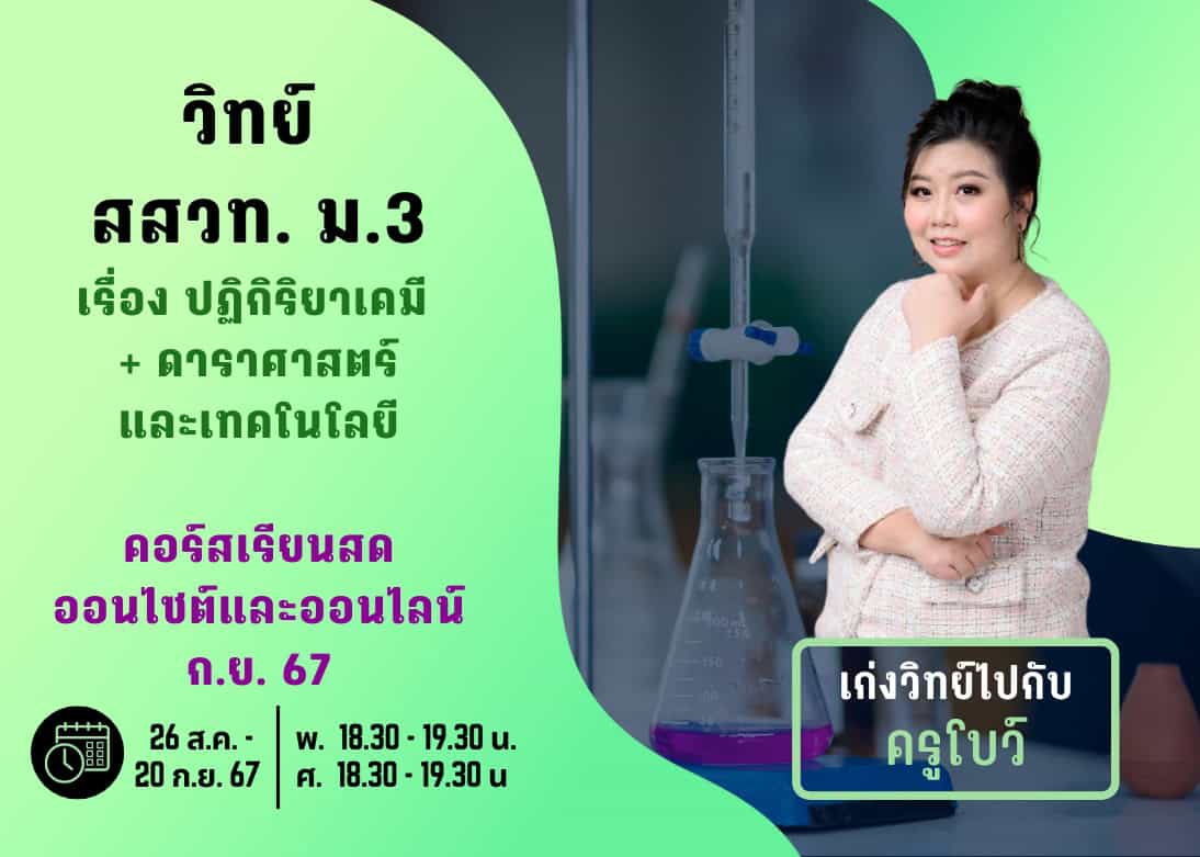 📢โดยเนื้อหาของคอร์สนี้ใน เดือน ก.ย. ครูโบว์ จะสอนเรื่อง ปฏิกิริยาเคมี + ดาราศาสตร์และเทคโนโลยี