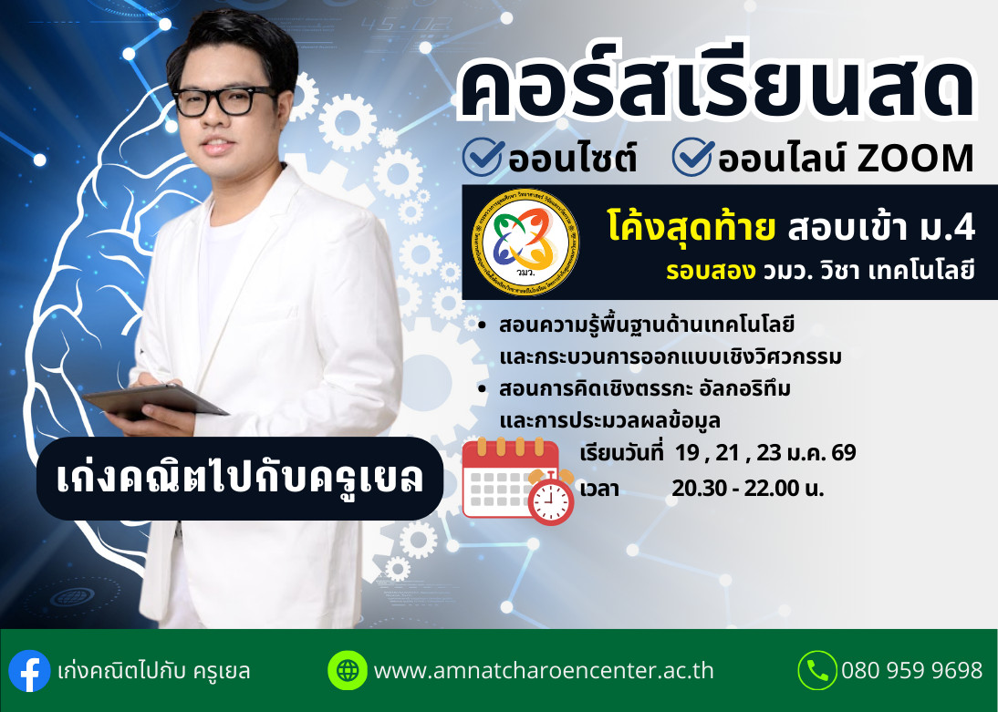 คอร์สโค้งสุดท้ายสอบเข้า ม.4 รอบสอง วมว. วิชา เทคโนโลยี