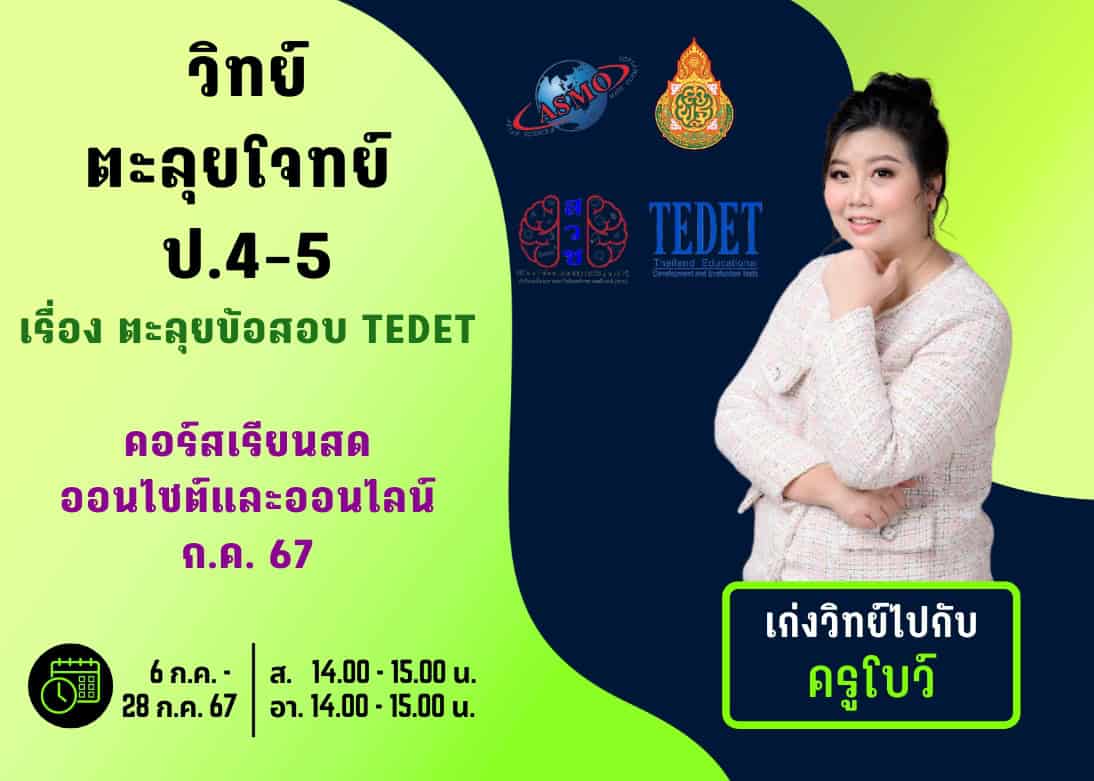 📢โดยเนื้อหาของคอร์สนี้ใน เดือน ก.ค. ครูโบว์ จะพานักเรียนฝึกทำข้อสอบเก่าจากสนามสอบ TEDET