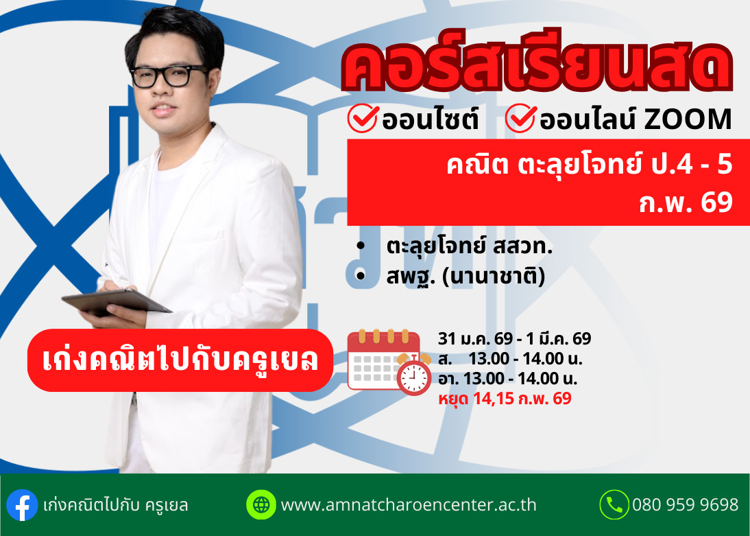 คอร์สคณิตตะลุยโจทย์ ป.4-5 ปีการศึกษา 2568 เดือน ก.พ. 69