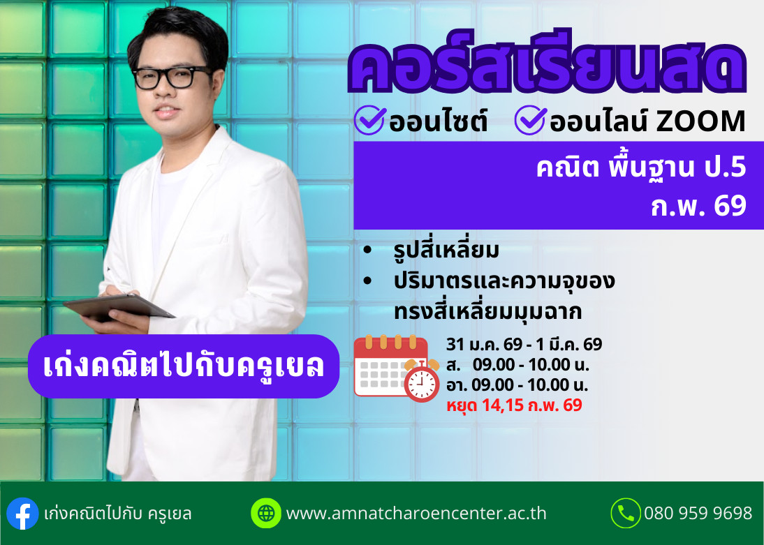 คอร์สคณิตพื้นฐาน ป.5 ปีการศึกษา 2568 เดือน ก.พ. 69