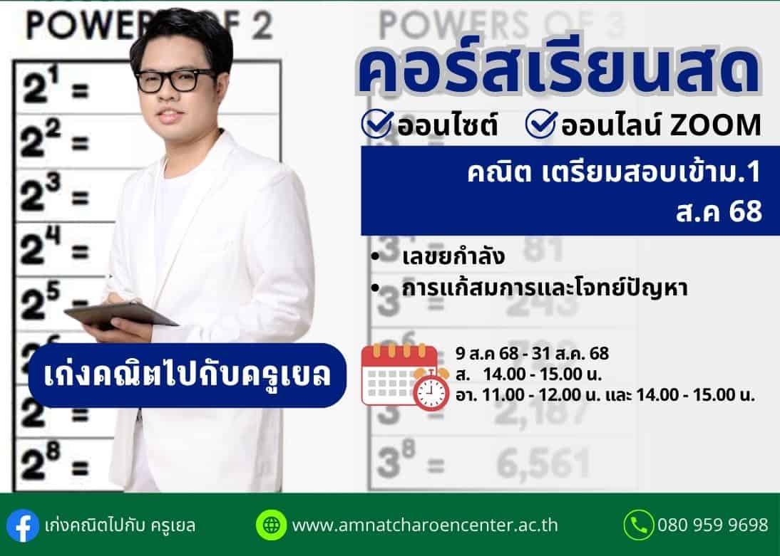 คอร์สคณิตสอบเข้า ม.1 ปีการศึกษา 2568 เดือน ส.ค. 68