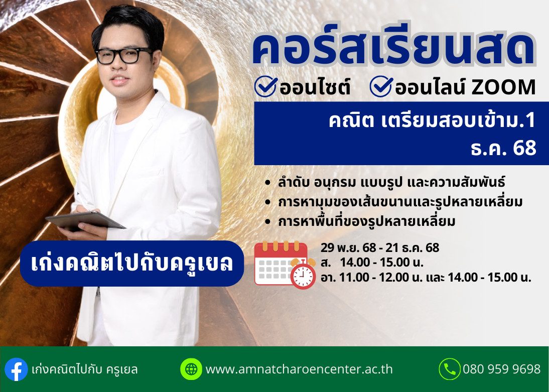 คอร์สคณิตสอบเข้า ม.1 ปีการศึกษา 2568 เดือน ธ.ค. 68