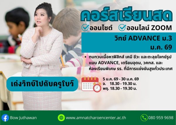 M368S211 – วิทย์ ADVANCE ม.3 ปีการศึกษา 2568 เดือน ม.ค. 69